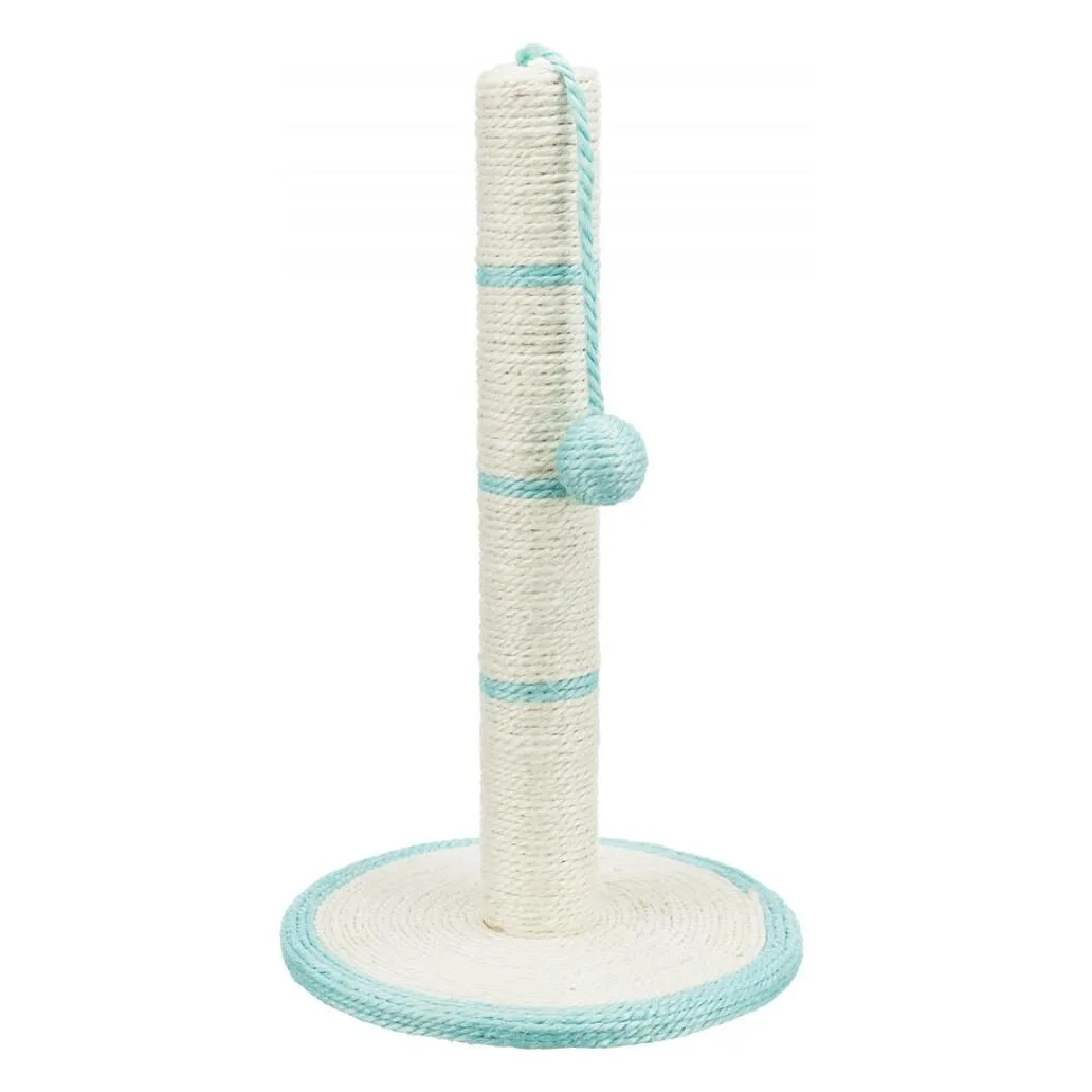 - Completamente envolvido em sisal natural - Com brinquedo pendurado - Com catnip - Cores sortidas TX4309: base ø 31cm / poste ø 7cm / altura 50 cm