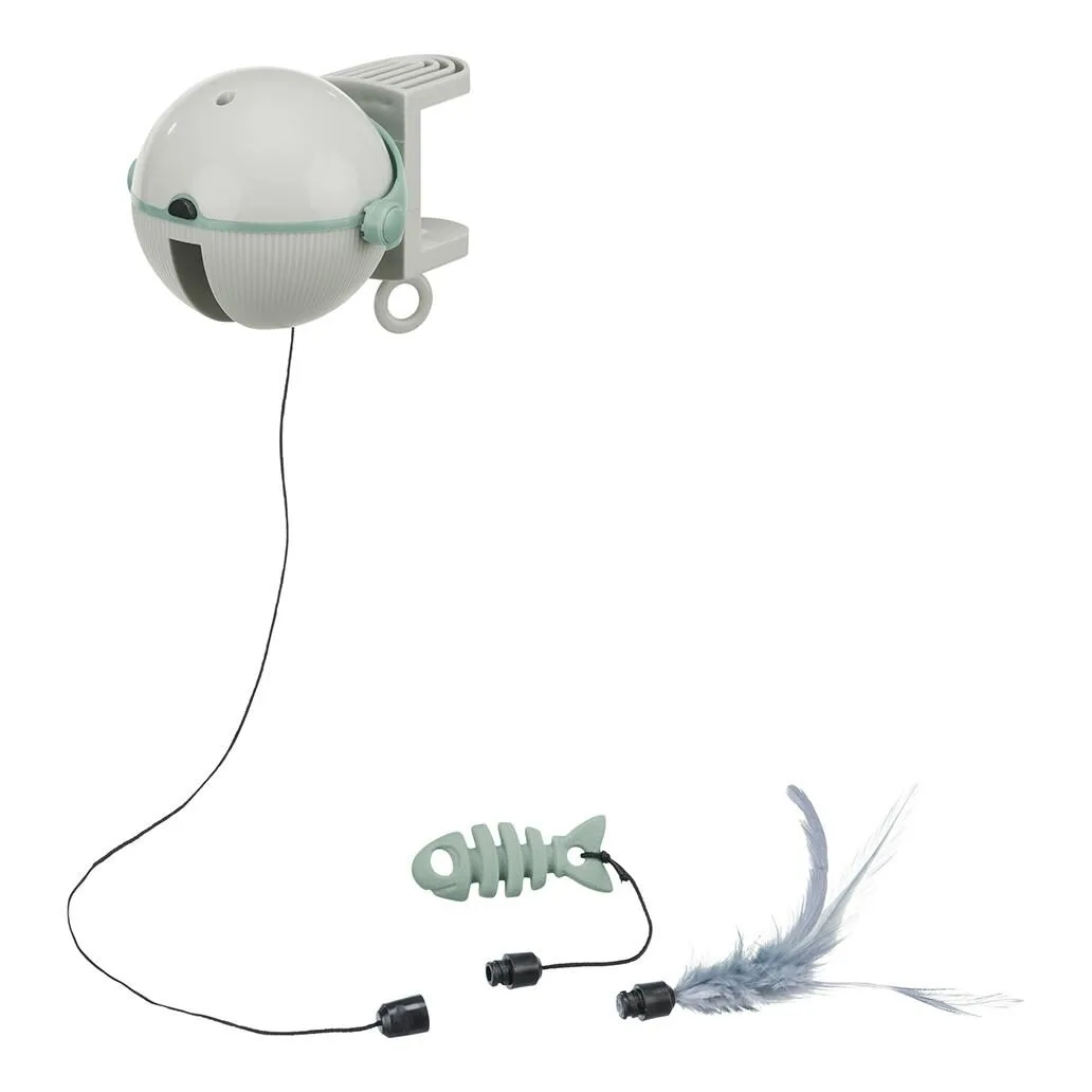 - para agarrar a uma mesa, prateleira ou poste de arranhar (grossura máxima de 4 cm) - brinquedo com fio move-se para cima e para baixo irregularmente - inclui brinquedo alternativo - desliga-se automaticamente passados 15 min. - funciona a bateria (não incluída) - plástico - 10 x 14 cm