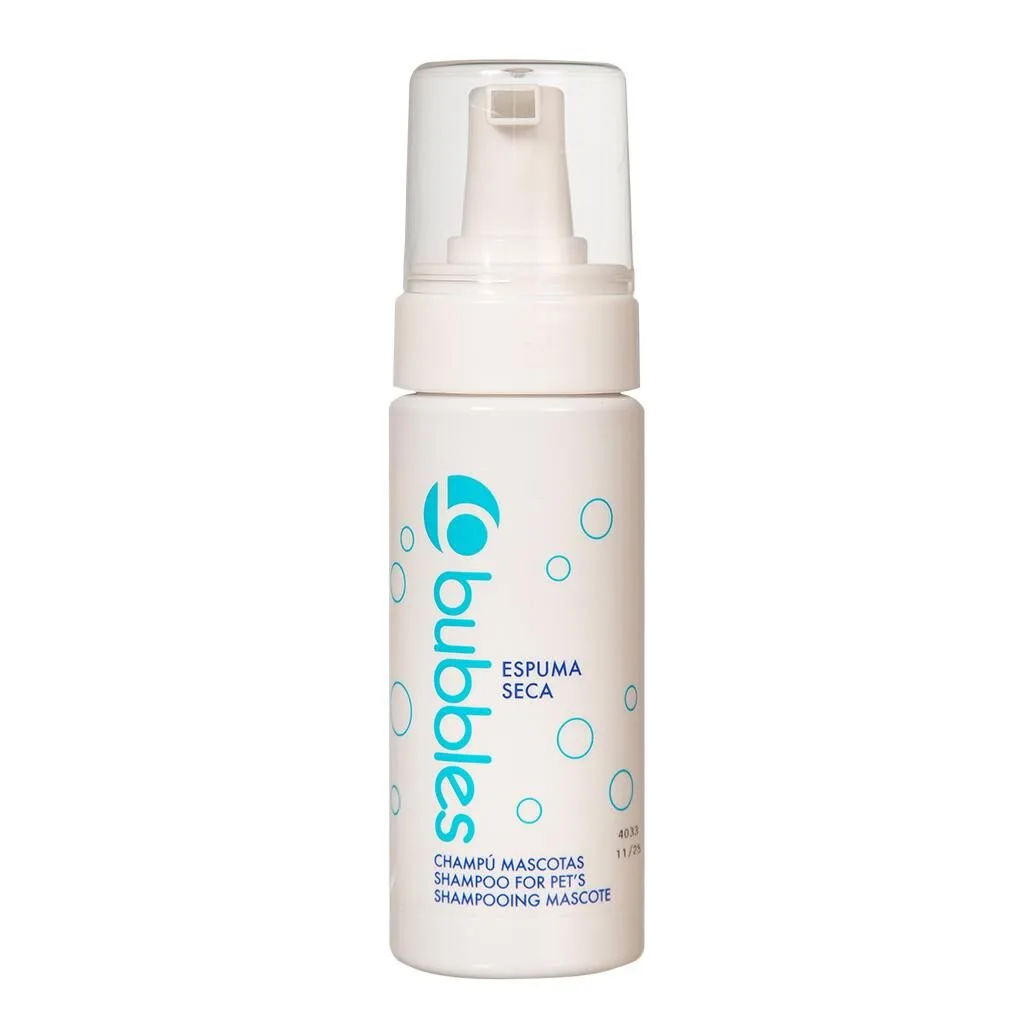 A espuma seca Bubbles é adequada para cachorros e cadelas grávidas e também para qualquer animal que não possa ser molhado, como animais com cio, em tratamento pós-operatório ou numa idade muito avançada. Também indicado para gatos e roedores.