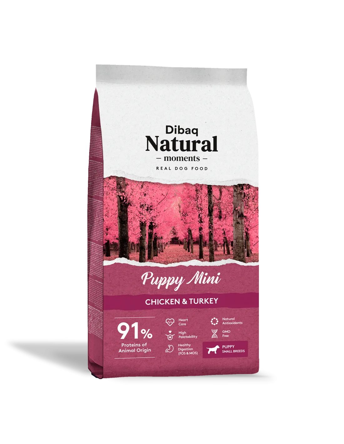 Alimento completo para cachorros e nutrizes de raças pequenas. Receita com antioxidantes naturais, protetores de articulações e sem OGM.