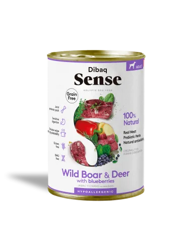 DIBAQ SENSE WILD RECIPE , é um alimento húmido super premium, feita com carne fresca de Veado e javali com mirtilos.