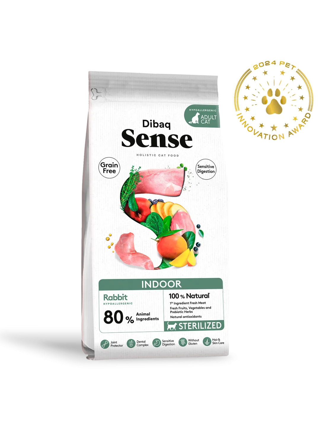 Alimento completo sem cereais hipoalergénico para gatos adultos e gatos esterilizados que vivem em ambientes fechados. Feito com carnes frescas, frutas e vegetais frescos e FOS e MOS.