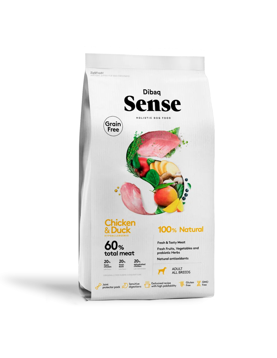 Alimento hipoalergénico 100% natural para cães adultos de todas as raças. Elaborado com frango e pato frescos, manga, cogumelos, mirtilos e maçã que promove a digestão, previne a obesidade e reduz reações alérgicas.