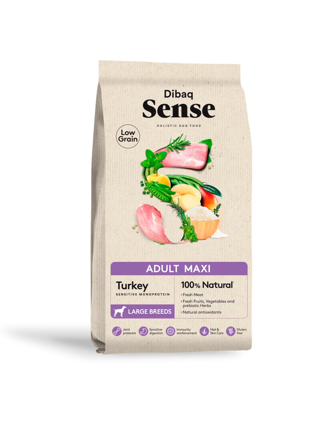 Alimento hipoalergénico para cães adultos de raças grandes, elaborado com carne fresca de peru e arroz e protetores de articulações.