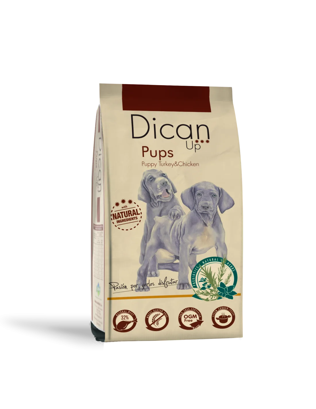 Alimento para cachorros menores de um ano e mães grávidas ou lactantes. Uma receita feita com frango, peru, ovo e plantas naturais
