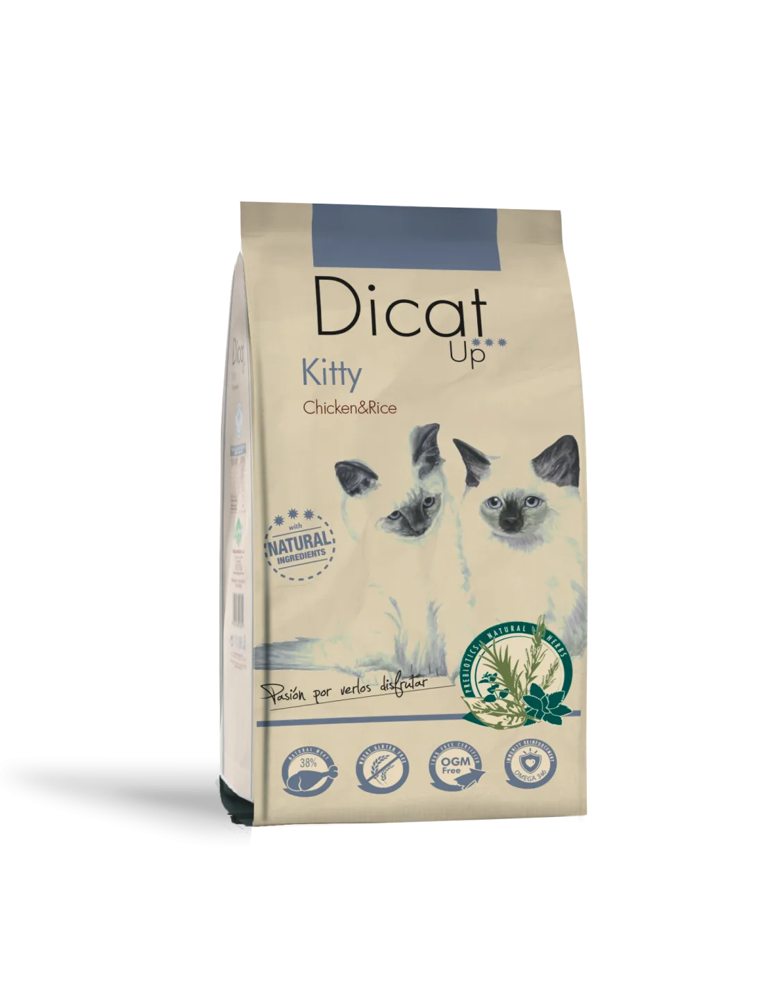 Dicat Up é um alimento completo para gatinhos nos primeiros meses de vida e gatas durante a gravidez com frango, arroz e plantas naturais.