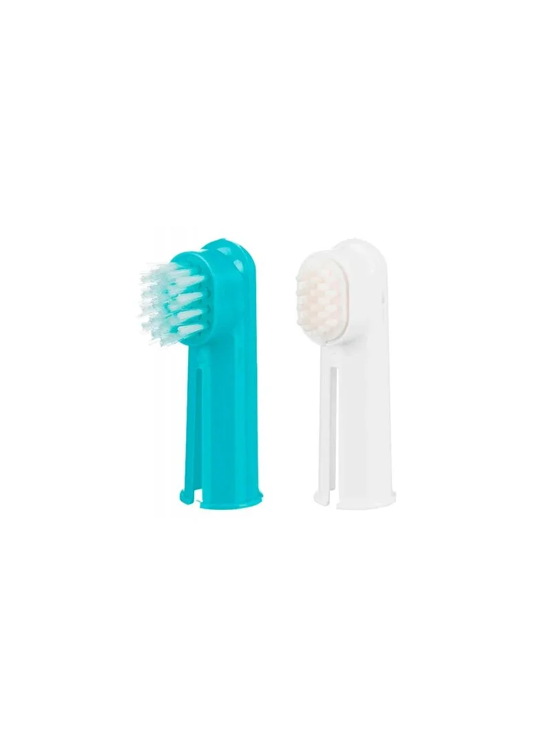 - Para cães e gatos - Uma escova de dedo para dentes e outra para massagem das gengivas - Melhora higiene dentária
