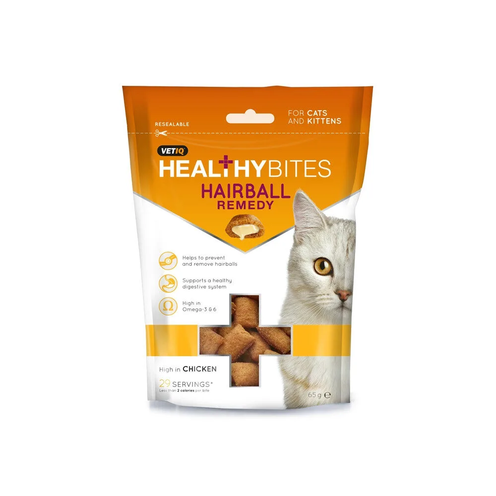 Healthybites Haiball Remedy são biscoitos com alto teor de frango, que ajudam a prevenir e a remover as bolas de pelo nos gatos. Além disso, ajudam ao suporte do sistema digestivo e são fonte de ómega-3 e ómega-6.