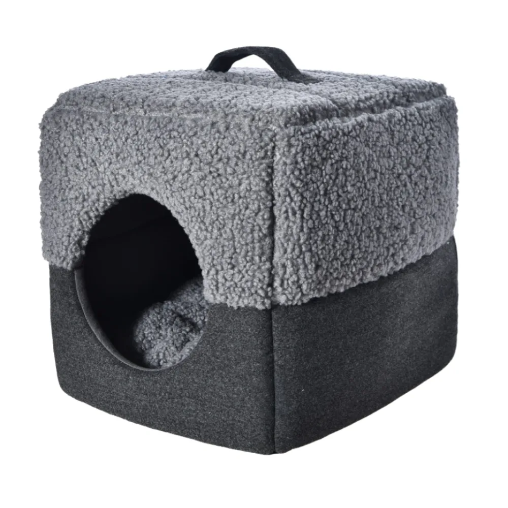 Este nicho é perfeito para o Inverno, sendo caracterizada por ter por toda a cama pelo suave de cor cinzenta calro e escuro, que oferece o máximo conforto e aquecimento ao seu companheiro de quatro patas.