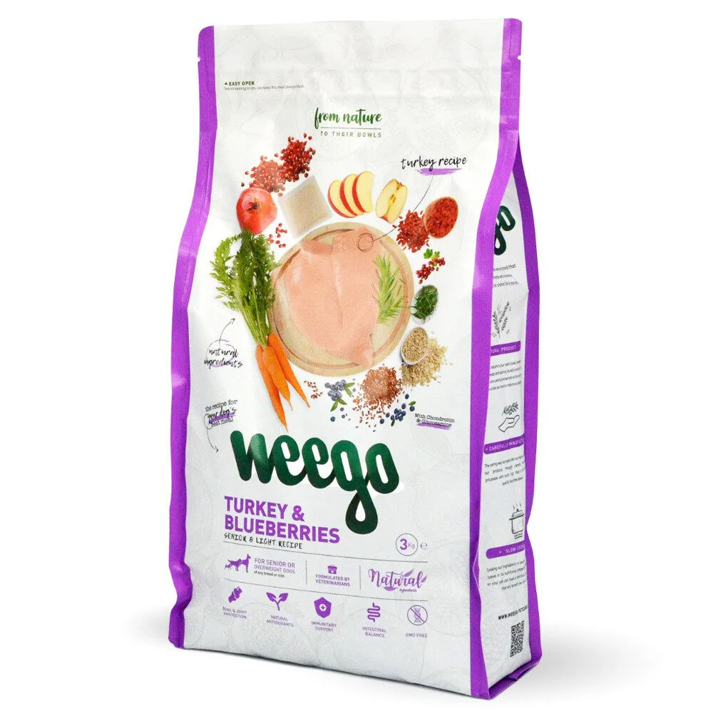 Alimento seco, natural, completo e equilibrado à base de peru e adequado para cães com mais de 7 anos ou excesso de peso, de qualquer tamanho.
